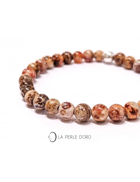Bracelet en Jaspe boisé (jaspe paysage) Pierre semi-précieuse d'Ancrage et de Nettoyage Bracelet Collection Messager pour Homme et Femme Jaspe boisé, perles rondes 6mm, Montage sur silicone extensible de haute qualité. Perle de finition en argent 925 italien. Bijou de Créateur, Artisan d'Art - Fabrication Française Taille à sélectionner ci-dessous Côté...