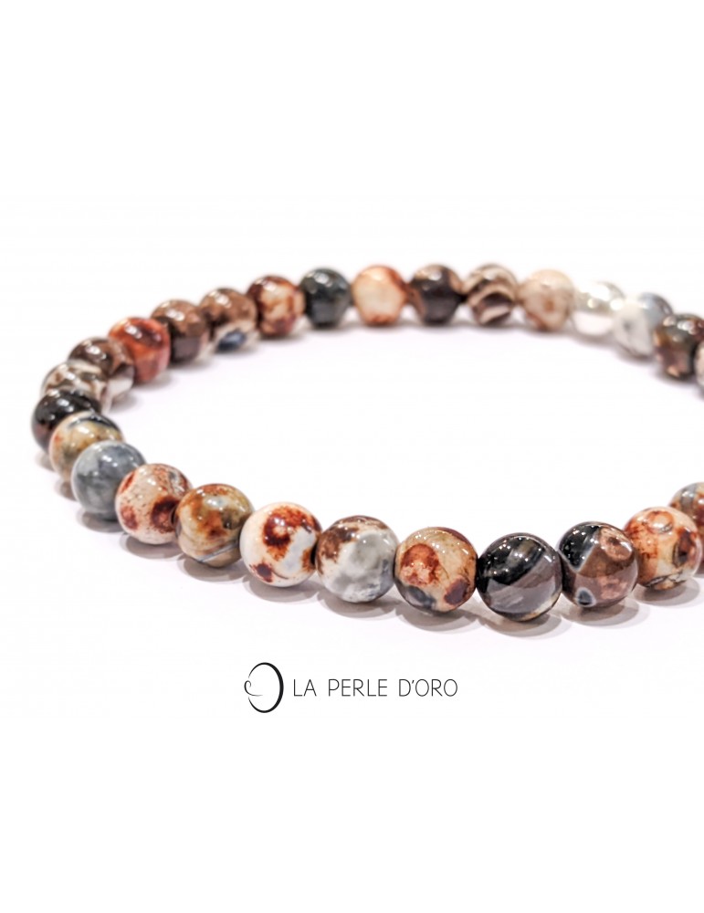 Bracelet en Jaspe picasso gris Pierre semi précieuse d'Ancrage et de Détox Bracelet de Bien-être pour Homme et Femme Jaspe picasso gris, perles rondes 6mm Montage sur silicone extensible de haute qualité Perle de finition en argent 925 italien Bijou de créateur, Artisan d'Art - Fabrication française Tailles à sélectionner ci-dessous Côté Cristalosophie...