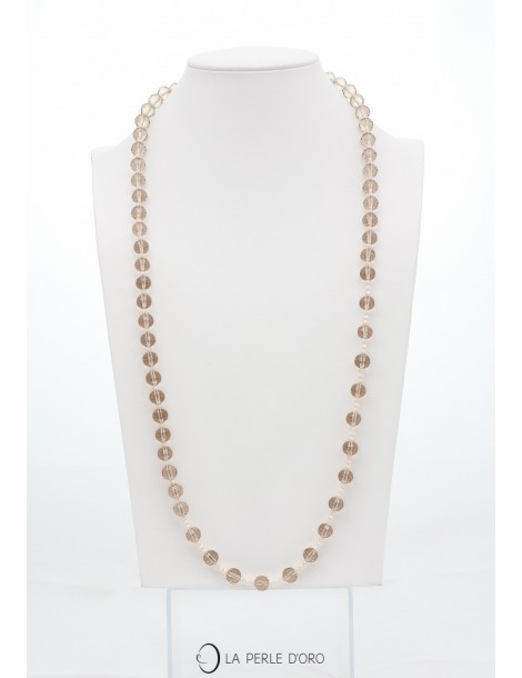 Cristal de Bohème beige, sautoir en création unique n°10502, Collection Léa