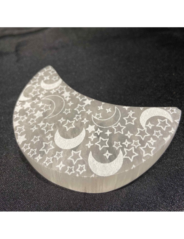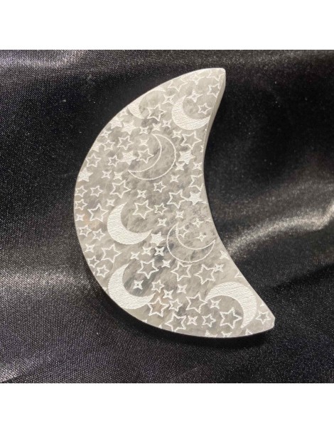 Sélénite, Croissant de lune gravé 7 à 8cm (Connexion, Purification)